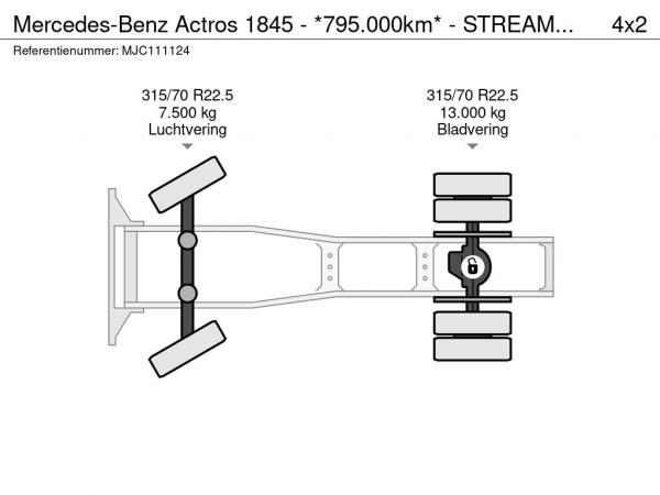 | المفردات | Actros 1845 - *795.000km* - STREAMSPACE 2m50 - 13L MOTOR - 2 DIESEL TANKS - FRIGO - EURO 6 |