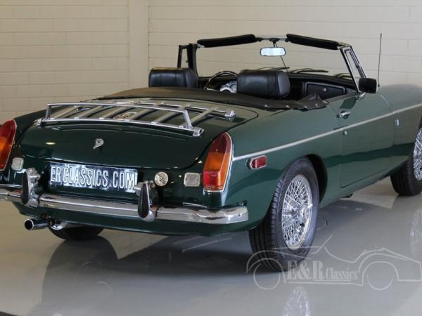 This MGB was delivered in beautiful British Racing Green paint with chrome wire wheels and luggagarack. The car has driven only 8.000 kms after the complete restoration. Several invoices are present. The interior has black leather and comfortable seats with headsupport. The interior also has a luxurious wooden steering wheel and chrome clocks. The fabulous driving MGB guarantees a lot of driving fun.
