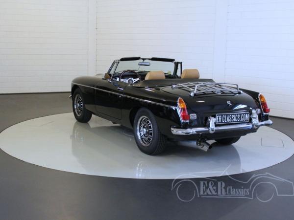 This in 1980 delivered MGB Roadster is fully restored and provided with fabulous black paint, new chrome and original MG anniversary rims. The V8 engine is fully restored by an official specialist (invoice present) and is connected to the 5 speed manual gearbox. The interior has extra comfortable seats with beige leather. This MG hasn’t been driven since restoration.