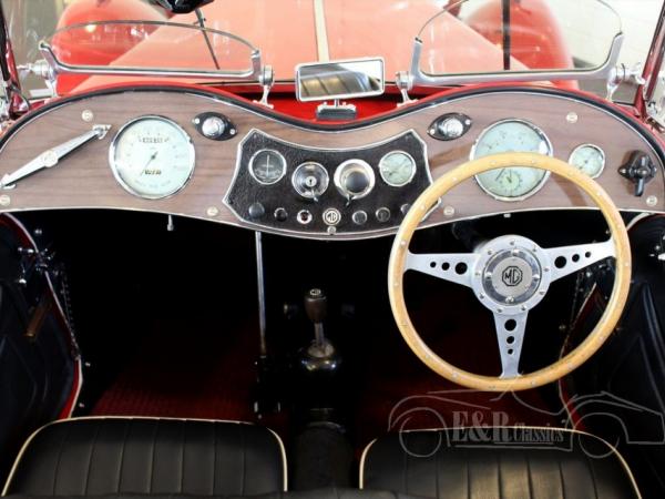 Beautiful 1948 MG TC. Provided with red paint, wire wheels and marvellous chrome. The interior has the original black leather seat and the elegant dashboard with chrome clocks. This MG has had 1 owner since 1979 and is a real car for the fans.