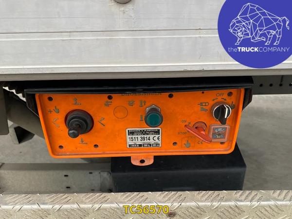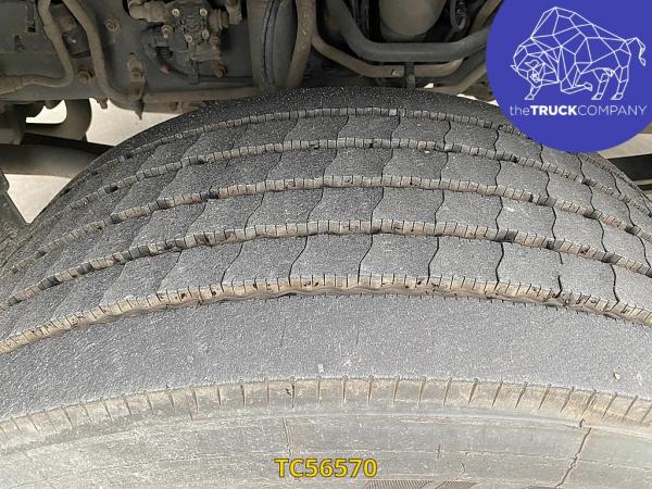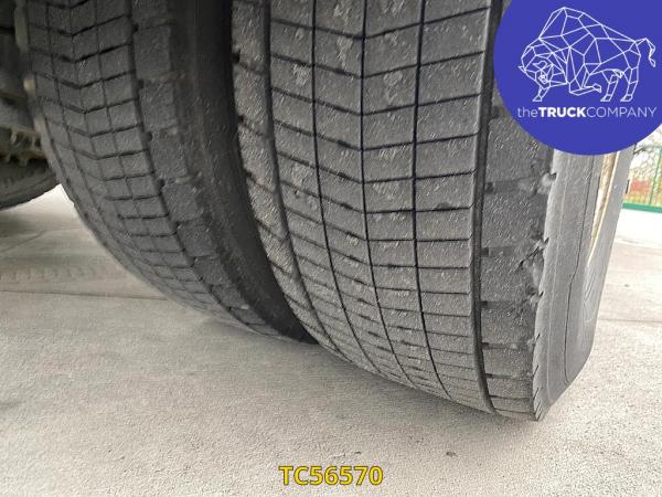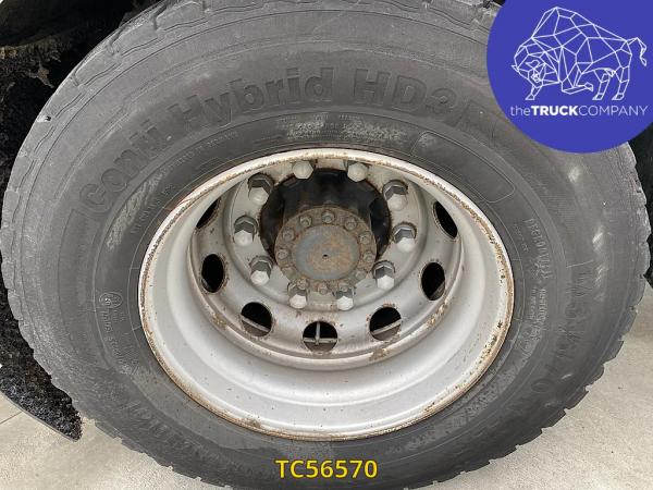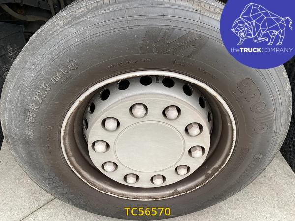 Achteras: Bandenmaat: 315/70 R22.5; Dubbellucht; Bandenprofiel linksbinnen: 12 mm; Bandenprofiel linksbuiten: 13 mm; Bandenprofiel rechtsbinnen: 12 mm; Bandenprofiel rechtsbuiten: 15 mm; Vering: luchtvering