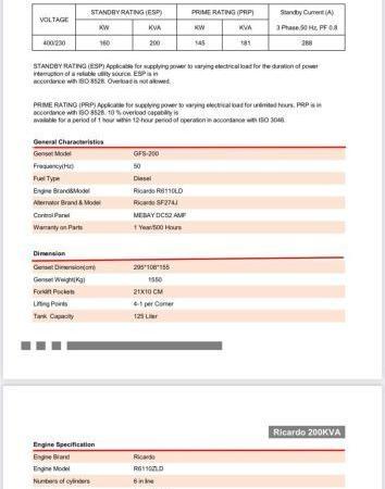 | المفردات | 200 KVA (160KW) Silent Generator 3 Phase 50HZ 400V New Unused many units in stock |