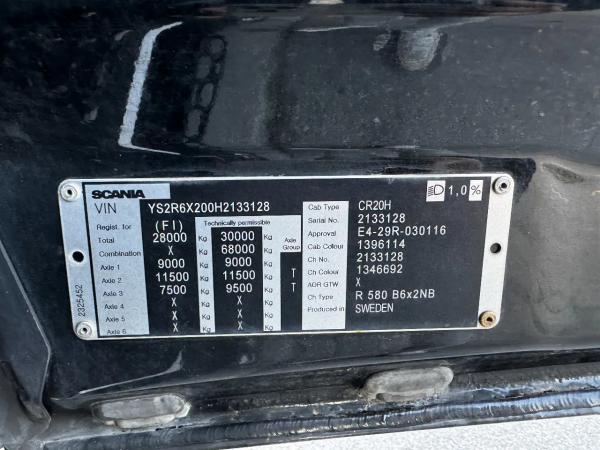 SCANIA (2017) Scania R580 V8 NGS 6X2 EURO 6 VDL 20T HOOK