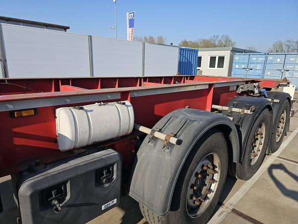 Aantal Assen: 3, Eigen gewicht: 3530 kg, Totaalgewicht: 39000 kg, Soort chassis: Volledig chassis, Materiaal chassis: staal, Kingpin afmeting: 2 inch, Vering type: luchtvering, ABS (Anti Blokkeer Systeem), EBS, Bouwjaar opbouw: 2013, Twistlocks: 1x20, Merk as: SCHMITZ