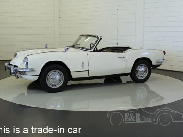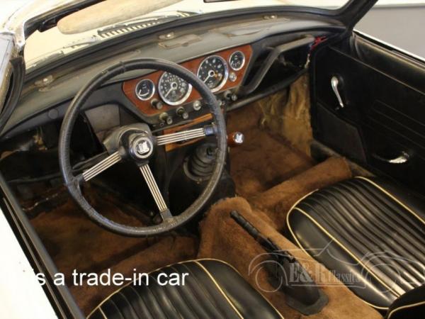 This Triumph was originally delivered in Holland in 1968. The Spitfire MK3 has white paint with the original black leatherette interior. The car drives, brakes and shifts gear very well. The car has valid Holland APK. It is a great car for the hobbyist who wants to drive next to giving attention to the car.