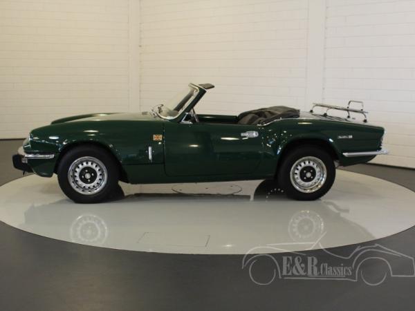 This is a 1973 Triumph Spitfire in colour British Racing Green with new black leather seats. Optically and technically in more than excellent condition. The car also has overdrive, extra oil cooler and chrome luggage rack.