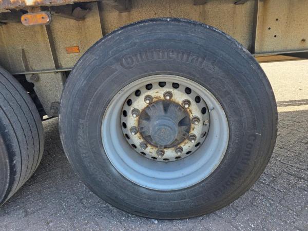 De oplegger is voorzien van 385/65 R22.5 banden, dit zorgt voor stabiel rijgedrag en een goede verdeling van de lading.