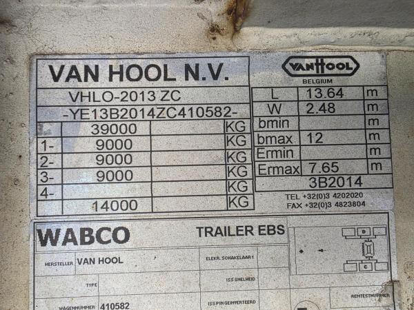 | المفردات | BPW - Drum Van Hool 3-assige oplegger - BPW assen - Trommelremmen - Luchtvering - 385/65 R22.5 - 39 Ton |