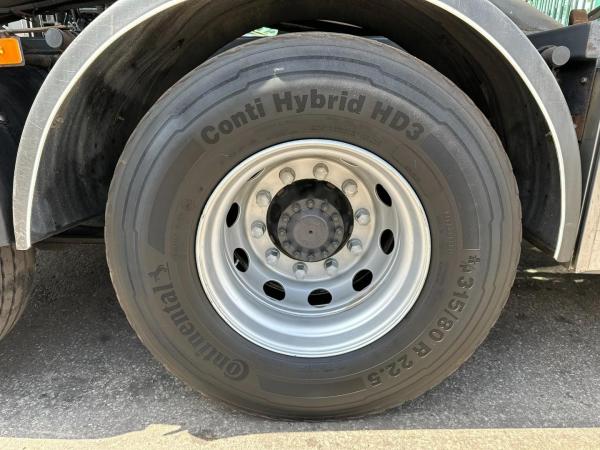 Essieu arrière 1: Dimension des pneus: 315/80 R22.5; Roues jumelées; Blocage de différentiel; Charge maximale sur essieu: 13000 kg; Sculptures des pneus: 30%; Suspension: suspension pneumatique