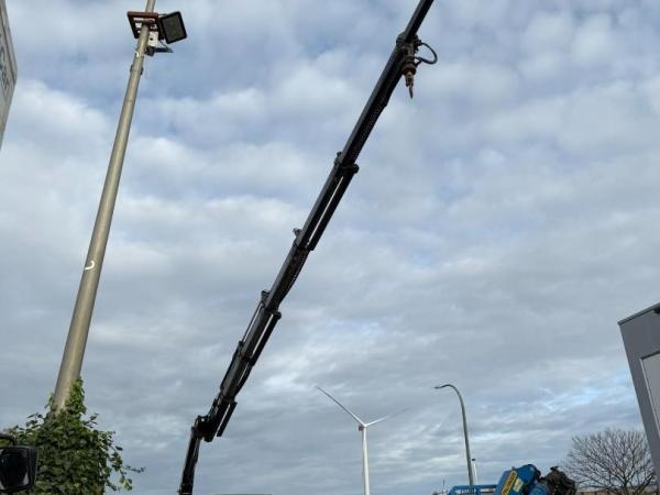 Kran: HIAB 195 E-5 + 1 ME X-HIPRO, Baujahr 2016, hinten am Fahrgestell