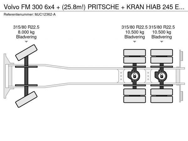 VOLVO (2003) Volvo FM 300 6x4 + (25.8m!) PRITSCHE + KRAN HIAB 245 E-5 + JIB 65 X-3 + 2 ME - *228.000km* - MANUAL - A/C - EURO 3 - BELGIAN TRUCK MJC12362-A