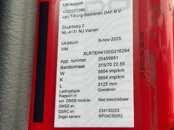 Vooras: Bandenmaat: 385/65R22.5; Max. aslast: 8000 kg; Meesturend; Bandenprofiel links: 30%; Bandenprofiel rechts: 30%; Vering: bladvering