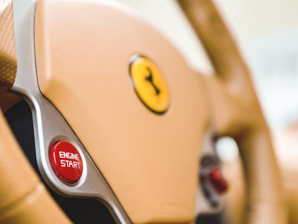 De Rosso remklauwen, 19″ Scuderia velgen en dito emblemen op de voorschermen accentueren de geweldige hartstocht, het bloedstollende temperament en de grote faam die kenmerkend is voor het legendarische merk uit Maranello.