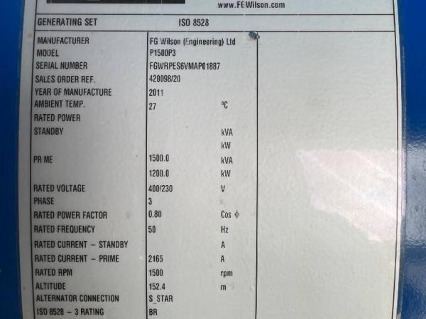 FG WILSON (2011) FG Wilson P1500P3 - 1.650 kVA Generator - DPX-12628