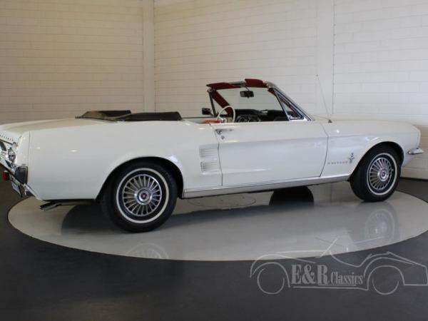 This Ford Mustang convertible was delivered in 1967. The car has beautiful white paint and fabulous chrome. This Mustang has several options such as powerbrakes and power top. The car has the original 4736 CC, V8 (289 CUI), 200 HP engine and automatic gearbox. The car is registered on the Belgian papers as 1965.