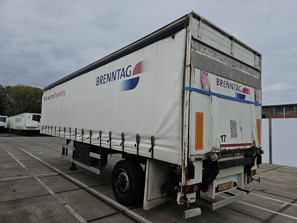 Aantal Assen: 1, Laadvermogen: 13060 kg, Eigen gewicht: 6940 kg, Totaalgewicht: 20000 kg, Soort chassis: Volledig chassis, Materiaal chassis: staal, Kingpin afmeting: 2 inch, ABS (Anti Blokkeer Systeem), EBS, Bouwjaar opbouw: 2000, Zijwand materiaal: zeil, Merk as: BPW, Laadklep, Soort laadklep: achtersluit klep, Capaciteit laadklep: 1500 kg, Merk laadklep: Dhollandia, Materiaal laadklep: staal, Plateau grootte: 182x252, Laadklep accu