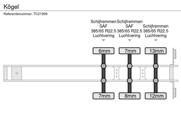 Achteras 2: Merk assen: SAF; Bandenprofiel links: 8 mm; Bandenprofiel rechts: 7 mm