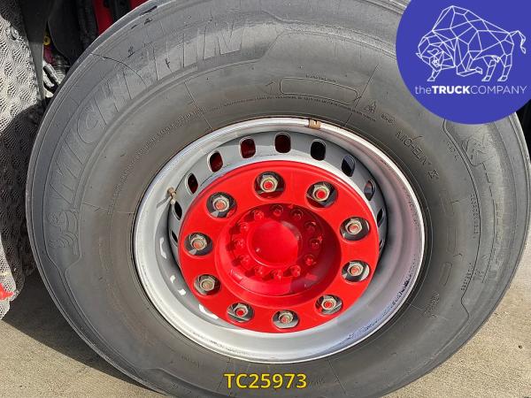 Achteras 1: Bandenmaat: 315/80 R22.5; Dubbellucht; Bandenprofiel linksbinnen: 6 mm; Bandenprofiel linksbuiten: 7 mm; Bandenprofiel rechtsbinnen: 8 mm; Bandenprofiel rechtsbuiten: 6 mm; Vering: luchtvering