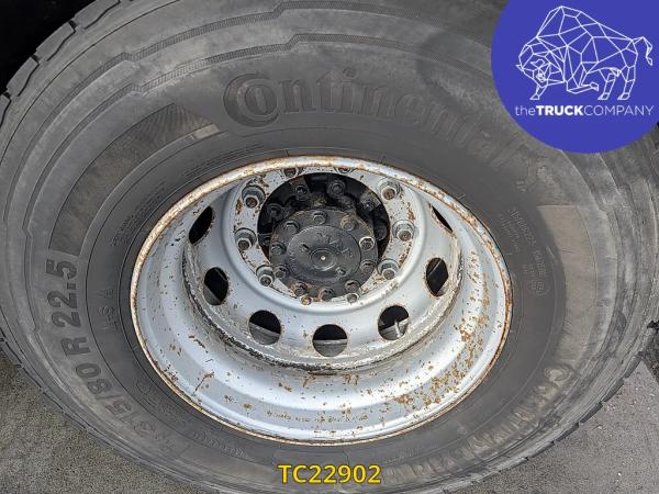 Achteras: Bandenmaat: 315/80 R22.5; Dubbellucht; Bandenprofiel linksbinnen: 11 mm; Bandenprofiel linksbuiten: 8 mm; Bandenprofiel rechtsbinnen: 8 mm; Bandenprofiel rechtsbuiten: 6 mm; Vering: luchtvering