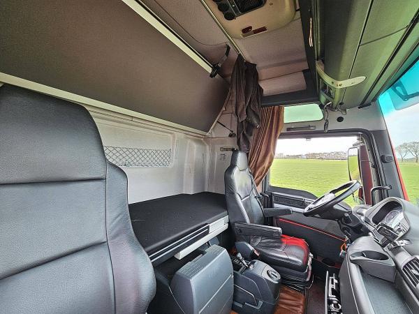 Aantal Assen: 3, Configuratie: 6x2, Laadvermogen: 14470 kg, Eigen gewicht: 12530 kg, Totaalgewicht: 27000 kg, Diesel inhoud totaal: 800 liter, 2e dieseltank, Aanhangwagen kopp., Trekgewicht middenas geremd: 24000 kg, Dikte koppelingspen: Special, Hoogte chassis: 90 cm, Schotel type: Fixed, Aantal sperren: 1, Vering type: luchtvering, Soort cabine: slaapcabine, Cruise control, Tachograaf, Digitale tachograaf, Airconditioning, Stand airco, Standkachel, Elektrische ramen, Elektrische spiegels, Radio/cassette, GPS navigatie, Kleur: Rood, Verwarmde spiegels, Soort lampen: Halogeen, Climatecontrol, Stoelverwarming, Bluetooth, Zwaailichten, Motorvermogen: 324 Kw (434 Hp), Brandstof: diesel, Euro: 5, Soort versnellingsbak: AS-tronic, Merk versnellingsbak: ZF, Versnellingen: 12, Stuurbekrachtiging, ABS (Anti Blokkeer Systeem), ASR (Anti Slip Regeling), PTO, Start accu, Centrale vergrendeling, Zitplaatsen: 2, Stoelopstelling: 1+1, Stoelbekleding: leder, Stoel verstelling: Handmatig