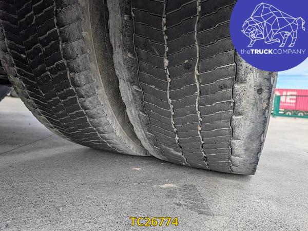 Achteras: Bandenmaat: 315/70 R22.5; Dubbellucht; Bandenprofiel linksbinnen: 8 mm; Bandenprofiel linksbuiten: 7 mm; Bandenprofiel rechtsbinnen: 8 mm; Bandenprofiel rechtsbuiten: 7 mm; Vering: luchtvering