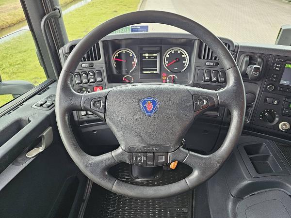 Aantal Assen: 2, Configuratie: 4x2, Laadvermogen: 8565 kg, Eigen gewicht: 10435 kg, Totaalgewicht: 19000 kg, Diesel inhoud totaal: 300 liter, Schotel type: Fixed, Vering type: luchtvering, Soort cabine: Korte cabine, Cruise control, Tachograaf, Digitale tachograaf, Airconditioning, Elektrische ramen, Elektrische spiegels, Radio/cassette, GPS navigatie, Kleur: Meerkleurig, Verwarmde spiegels, Soort lampen: Halogeen, Climatecontrol, Bluetooth, Motorvermogen: 184 Kw (247 Hp), Brandstof: diesel, Euro: 6, Soort versnellingsbak: Opti-cruise, Merk versnellingsbak: Scania, Versnellingen: 12, Stuurbekrachtiging, ABS (Anti Blokkeer Systeem), ASR (Anti Slip Regeling), Start accu, systeemtype: ., Centrale vergrendeling, Zitplaatsen: 2, Stoelopstelling: 1+1, Stoelbekleding: stof, Stoel verstelling: Handmatig, Laadklep, Soort laadklep: onderschuif klep, Capaciteit laadklep: 1500 kg, Merk laadklep: Dhollandia, Materiaal laadklep: aluminium, Plateau grootte: 180x240