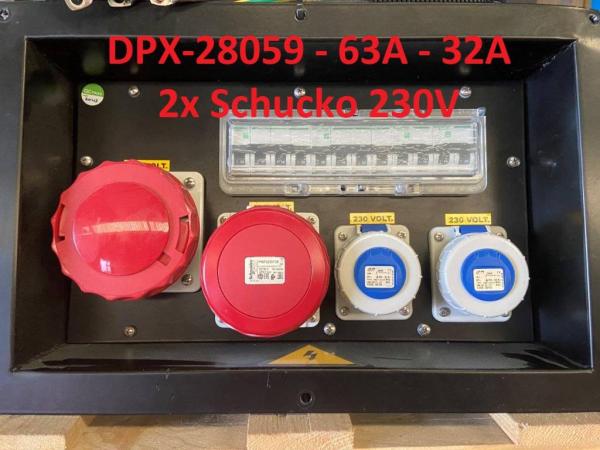 - DPX-28059 = Socket box: 63A - 32A - 2x Schucko 230V