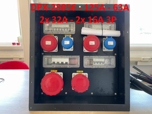- DPX-28056 = Socket box: 125A - 63A - 2x 32A - 2x 16A 3P