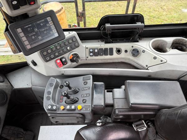 The machine is equipped with 4x4 drive, joystick steering, and a rear-view camera for safe and efficient operation. The air-conditioned cabin ensures maximum operator comfort. It is fitted with Bridgestone tyres and complies with EU Stage IV and EPA Tier 4 emission standards. A bucket and quick coupler are available on request.