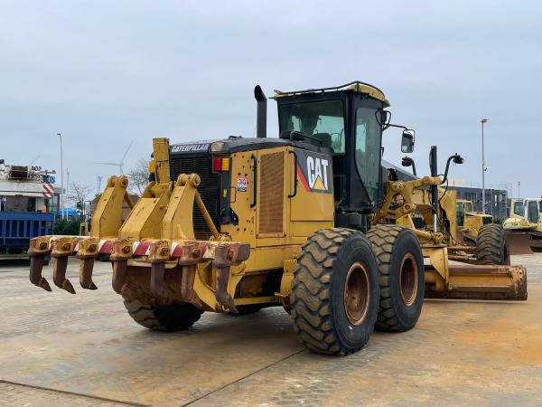 This Caterpillar 14M motor grader, built in 2013, is available for sale at BIG Machinery in the Netherlands.
