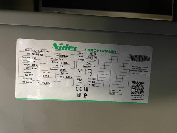 Generatorvermogen: 360 kVA