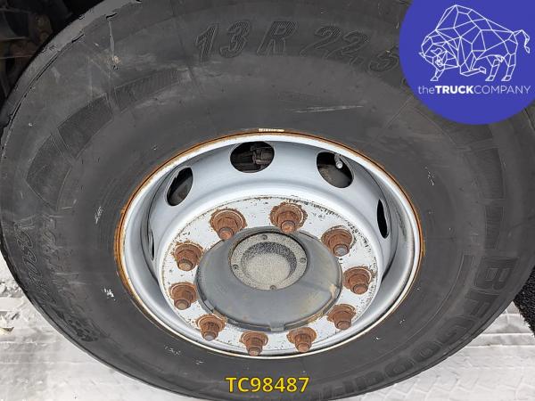 Achteras: Bandenmaat: 315/80 R22.5; Dubbellucht; Bandenprofiel linksbinnen: 8 mm; Bandenprofiel linksbuiten: 10 mm; Bandenprofiel rechtsbinnen: 7 mm; Bandenprofiel rechtsbuiten: 10 mm; Vering: luchtvering