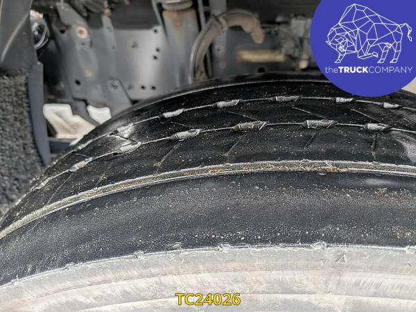 Achteras: Dubbellucht; Bandenprofiel linksbinnen: 5 mm; Bandenprofiel linksbuiten: 8 mm; Bandenprofiel rechtsbinnen: 8 mm; Bandenprofiel rechtsbuiten: 5 mm; Vering: luchtvering