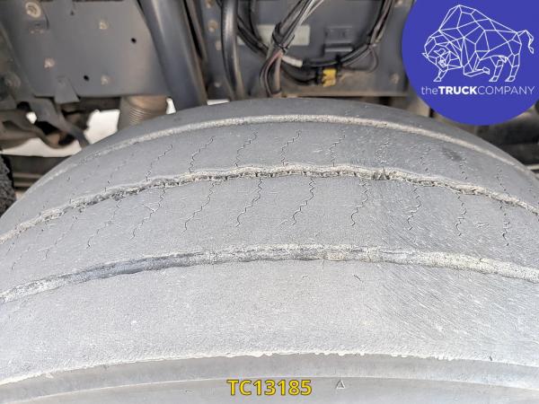 Achteras 1: Bandenmaat: 315/80 R22.5; Dubbellucht; Bandenprofiel linksbinnen: 7 mm; Bandenprofiel linksbuiten: 5 mm; Bandenprofiel rechtsbinnen: 6 mm; Bandenprofiel rechtsbuiten: 6 mm; Vering: luchtvering