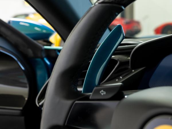- Aluminium F1 paddles finished in Blu Capri for a tactile connection between driver and machine
