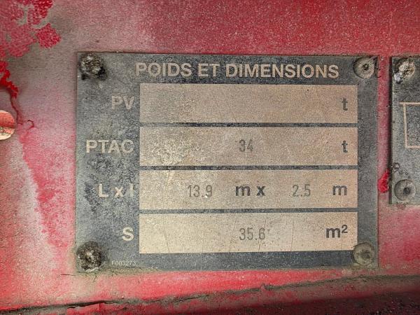 Essieu arrière 3: Charge maximale sur essieu: 9000 kg; Sculptures des pneus gauche: 90%; Sculptures des pneus droite: 90%