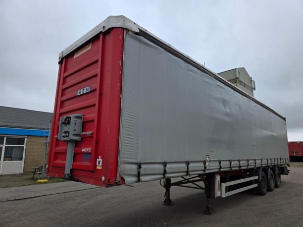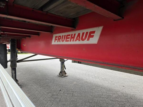 Fruehauf zeilentrailer uit 2008, uitgevoerd met luchtvering en schijfremmen.