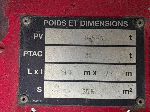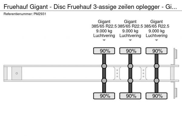 | Particulars | Gigant - Disc Fruehauf 3-assige zeilen oplegger - Gigant assen - Schijfremmen - Luchtvering - 2008 |