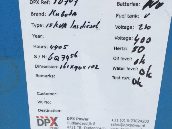 Generator vermogen 15 kVA