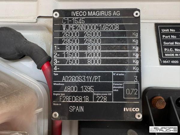 | Particulars | Stralis 260S31 Steel/Air - Manual - Palfinger 29002 - Remote Control - 6x4 |