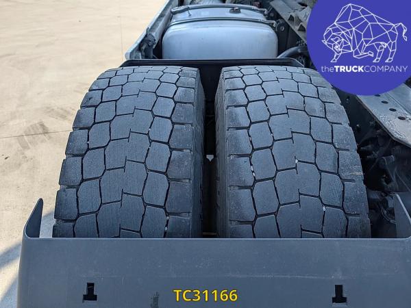 Achteras: Bandenmaat: 315/80 R22.5; Dubbellucht; Bandenprofiel linksbinnen: 5 mm; Bandenprofiel linksbuiten: 5 mm; Bandenprofiel rechtsbinnen: 3 mm; Bandenprofiel rechtsbuiten: 4 mm; Vering: luchtvering