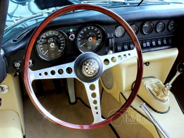 This really fabulous Jaguar E-Type Series 2 cabriolet is restored in 2017 and was provided with new paint in the colour British Racing Green, a very elegant combination with the completely new beige leather interior with green piping. The car has the original matching numbers, 6 cyl. Engine. Heritage Certificate is present and the full report of the restoration also. So a marvellous and perfect driving Jaguar E-Type Series 2 convertible.