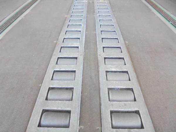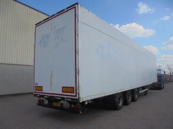 KASTENTRAILER VOORZIEN VAN ROLLERBAAN OP LUCHT EN KETTING LAADSYSTEEM VOOR AUTOMATISCH LADEN