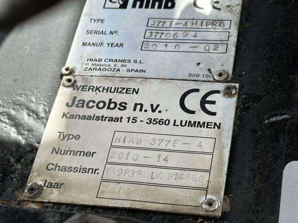 Kraan: HIAB 377 E-4 HIPRO + FLY JIB 100X-3, bouwjaar 2010, achter op het chassis