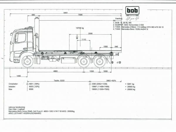 Vooras: Bandenmaat: 385/55R22.5; Max. aslast: 9000 kg; Meesturend; Bandenprofiel links: 100%; Bandenprofiel rechts: 100%; Vering: bladvering