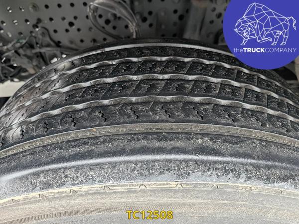 Achteras: Bandenmaat: 315/70 R22.5; Dubbellucht; Bandenprofiel linksbinnen: 7 mm; Bandenprofiel linksbuiten: 7 mm; Bandenprofiel rechtsbinnen: 8 mm; Bandenprofiel rechtsbuiten: 8 mm; Vering: luchtvering