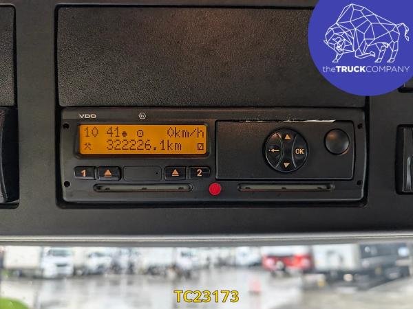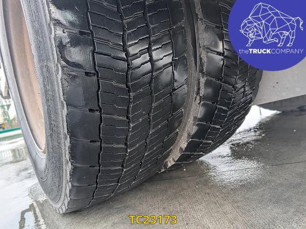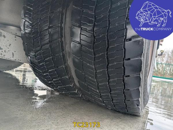 Achteras: Bandenmaat: 315/70 R22.5; Dubbellucht; Bandenprofiel linksbinnen: 15 mm; Bandenprofiel linksbuiten: 11 mm; Bandenprofiel rechtsbinnen: 15 mm; Bandenprofiel rechtsbuiten: 15 mm; Vering: luchtvering