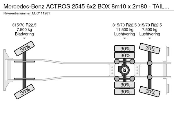| Particulars | ACTROS 2545 6x2 BOX 8m10 x 2m80 - TAILLIFT - LIFT + STEERING AXLE - 13 L ENGINE - EURO 6 - A/C - FRIGO - FR TRUCK |