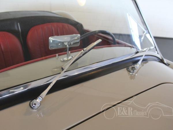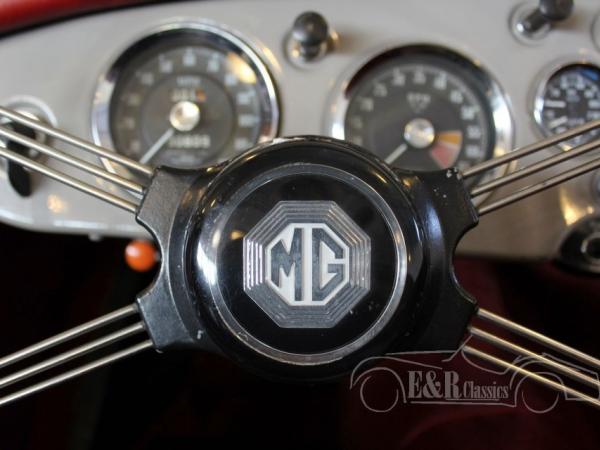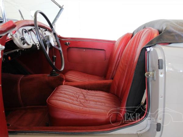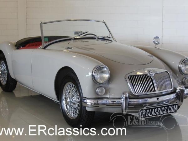 In 1959 delivered MGA 1600 Roadster, provided with the beautiful original MG Dove Grey paint with chrome wire wheels. The interior has the dashboard in paint colour with chrome clocks. The seats have red leather upholstery. A beautiful colour combination with the exterieur. The MGA 1600 has disc brakes at the front and is ready for lots of driving fun.