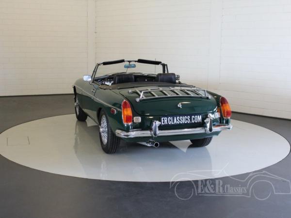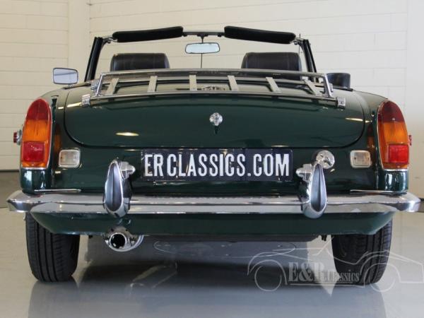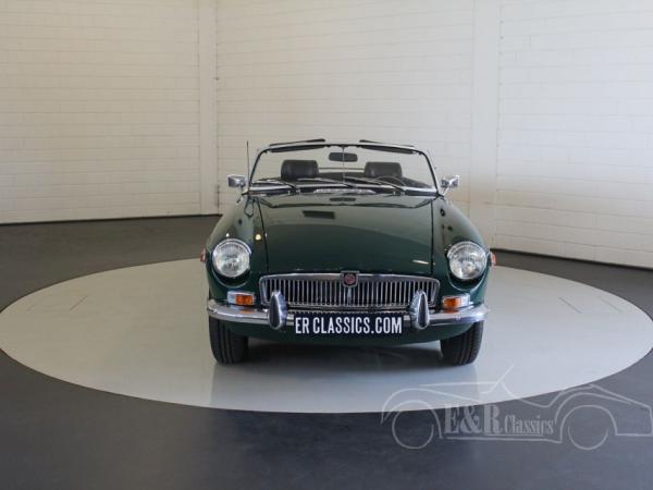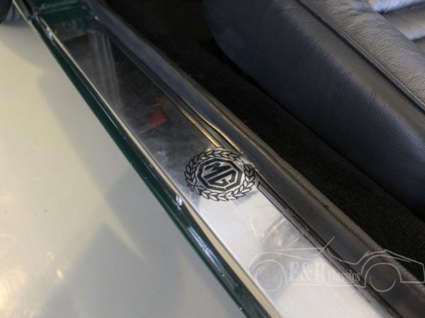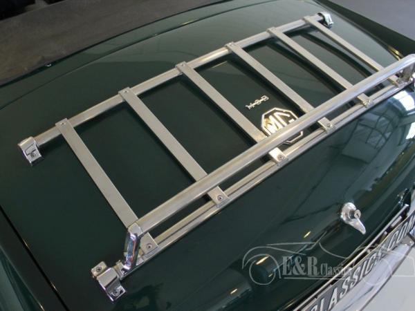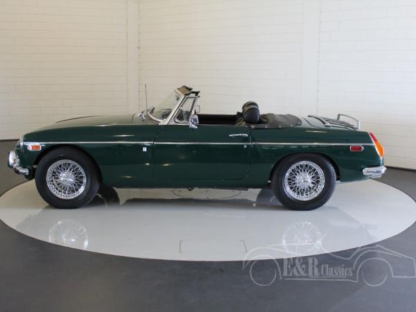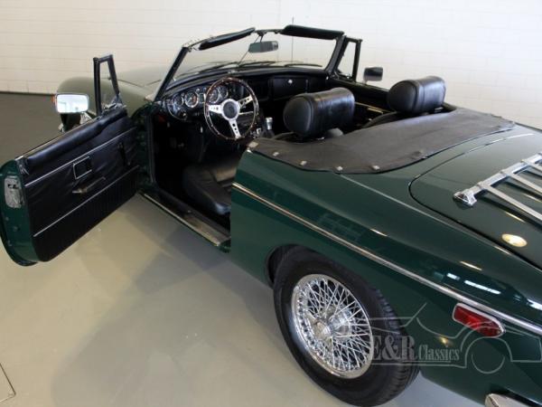 This MGB was delivered in beautiful British Racing Green paint with chrome wire wheels and luggagarack. The car has driven only 8.000 kms after the complete restoration. Several invoices are present. The interior has black leather and comfortable seats with headsupport. The interior also has a luxurious wooden steering wheel and chrome clocks. The fabulous driving MGB guarantees a lot of driving fun.